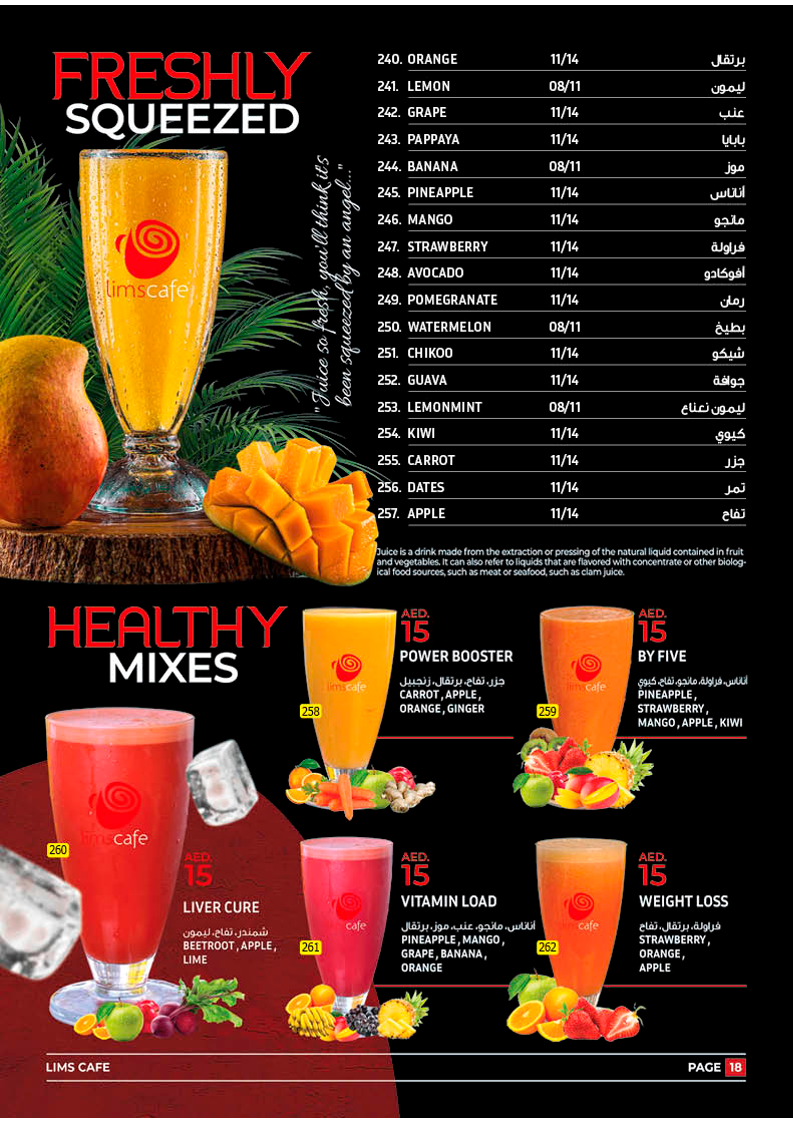- Dive into refreshing smoothies like Pash N Shoot and Avo Go Go, each priced at AED 15.00, perfect for a quick pick-me-up.
